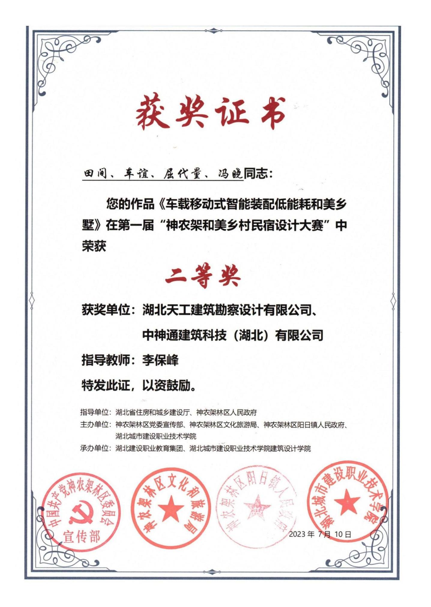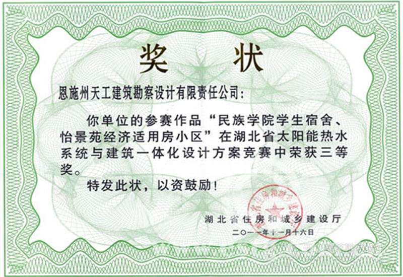 湖北省太陽(yáng)能熱水系統(tǒng)與建筑一體化設(shè)計(jì)方案競(jìng)賽獎(jiǎng)狀