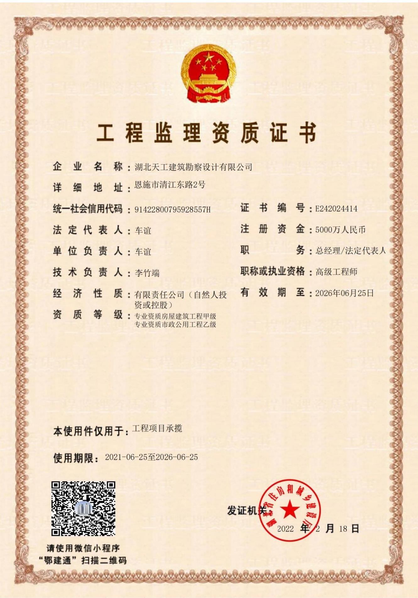 工程監(jiān)理資質(zhì)證書