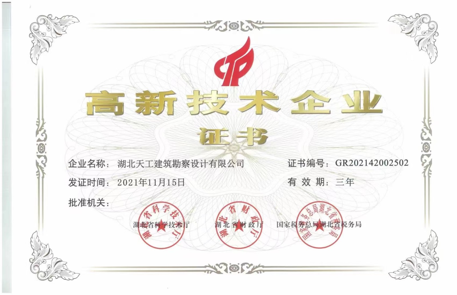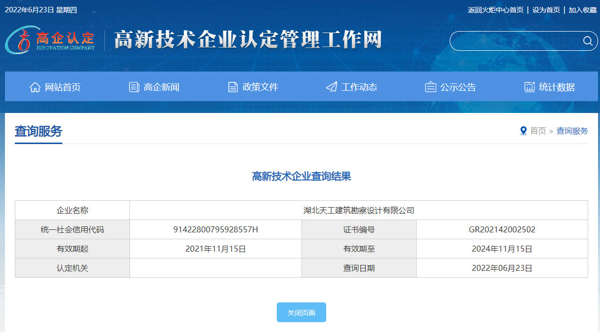 根據(jù)《高新技術(shù)企業(yè)認(rèn)定管理辦法》(國科發(fā)火〔2016〕32號)和《高新技術(shù)企業(yè)認(rèn)定管理工作指引》(國科發(fā)火〔2016〕195號)有關(guān)規(guī)定,湖北省公示了認(rèn)定高新技術(shù)企業(yè)名單,湖北天工建筑勘察設(shè)計有限公司(以下簡稱“天工設(shè)計”)榜上有名,榮膺“國家高新技術(shù)企業(yè)”。