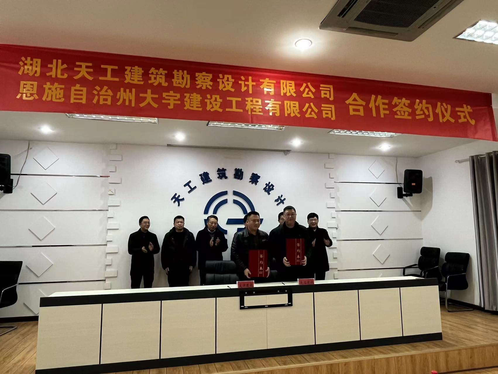 2024年1月18日(農(nóng)歷臘月初八)下午,湖北天工建筑勘察設(shè)計有限公司與恩施自治州大宇建設(shè)有限公司合作簽約儀式在恩施市清江東路2號“天工設(shè)計”五樓會議室舉行。恩施州住建局黨組成員、副局長袁燕奇,恩施州住建局黨組成員、總工胡平,恩施職業(yè)技術(shù)學(xué)院建筑工程學(xué)院院長雷元凱,恩施州建筑業(yè)協(xié)會會長王保榮等領(lǐng)導(dǎo)出席了會議。湖北天工建筑勘察設(shè)計有限公司及恩施自治州大宇建設(shè)公司相關(guān)負(fù)責(zé)人及社會各界人士參加了會議。