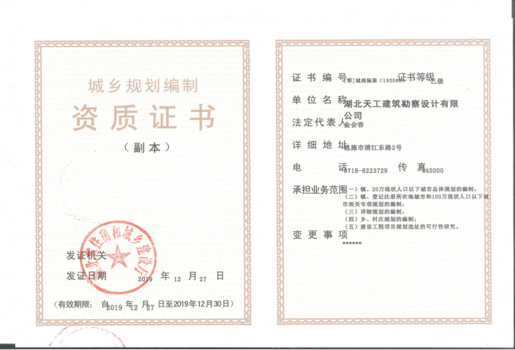 喜訊:天工設(shè)計(jì)取得城鄉(xiāng)規(guī)劃編制乙級(jí)資質(zhì)!