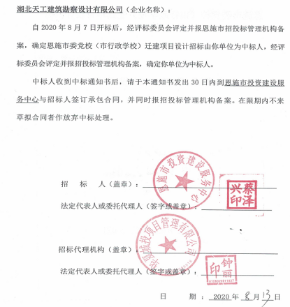 祝賀!湖北天工以綜合總分第一的優(yōu)勢中標(biāo)恩施市委黨校(市行政學(xué)校)遷建項目設(shè)計招標(biāo)!